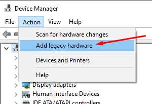Sekarang tekan pada tab Action dan klik pada Add legacy software.