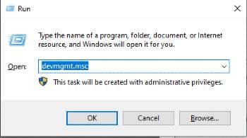Tekan Win + R lalu ketik perintah devmgmt.msc.