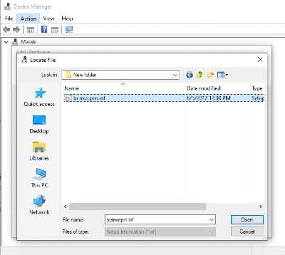 - Pastikan terdapat file dengan format INF.